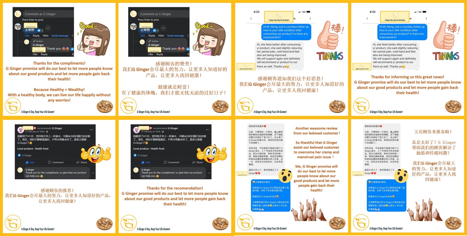 我们很高兴 G Ginger 已经帮助我们克服了客户的一些问题。 以下是顾客们的分享: We are glad that G Ginger already help to overcome some issue of our customer. Here is some of the review from our customers: